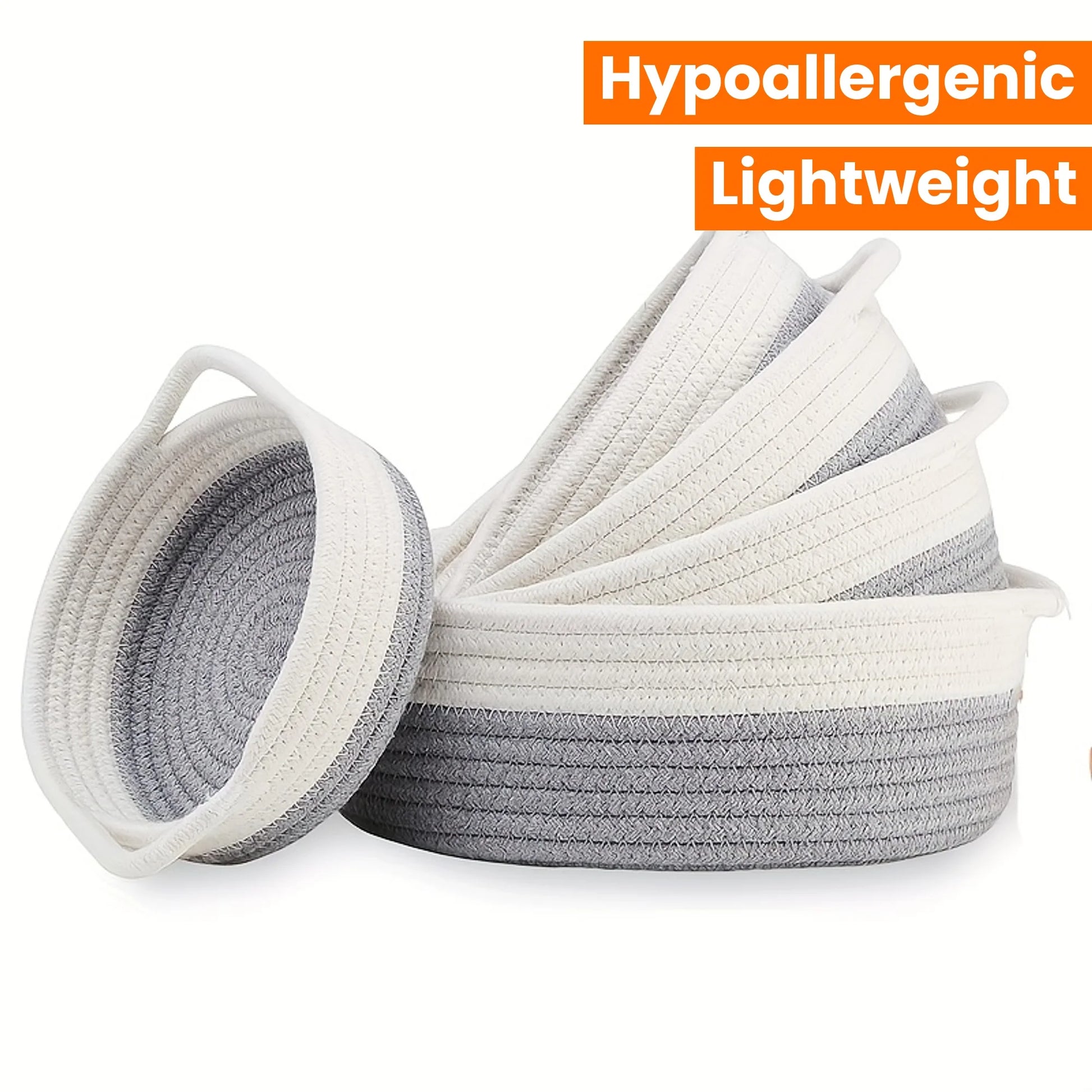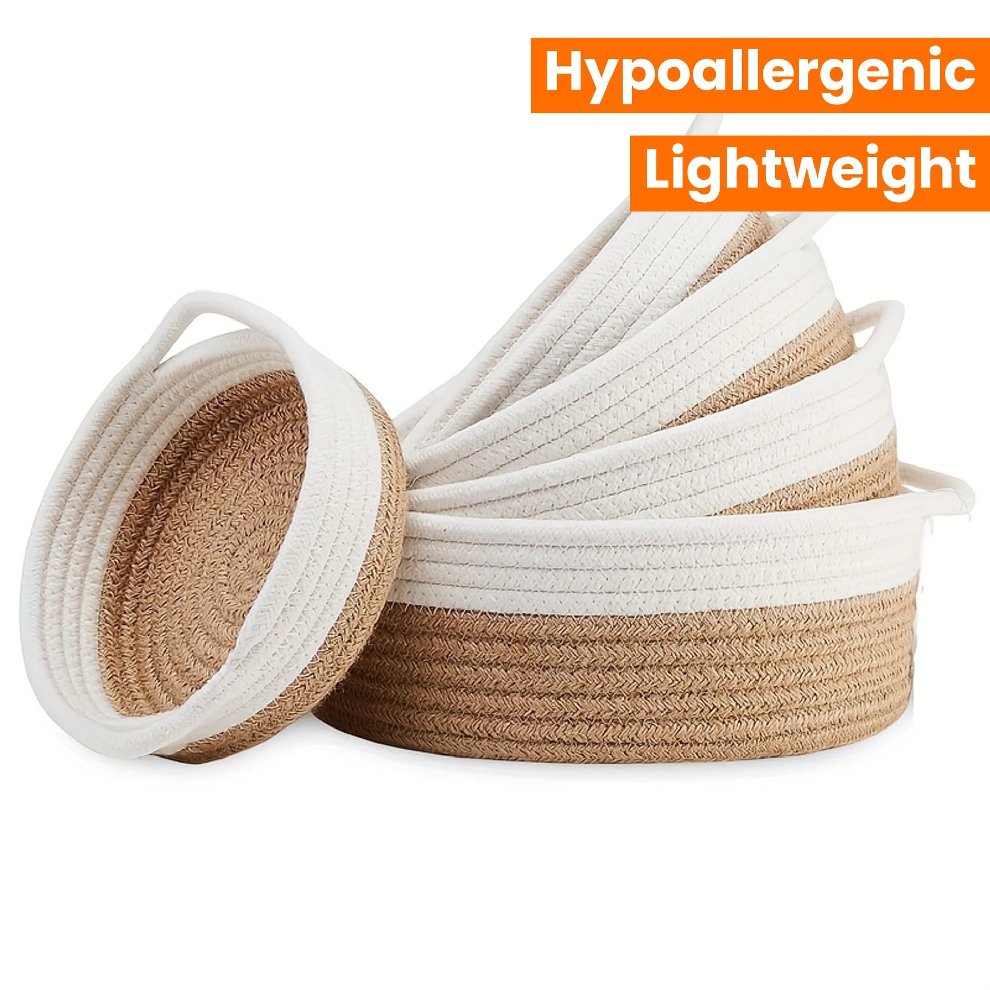 5pcs set of circular small baskets,hand woven baskets,toy storage baskets, fruits,remote controls,bathroom,table, key baskets