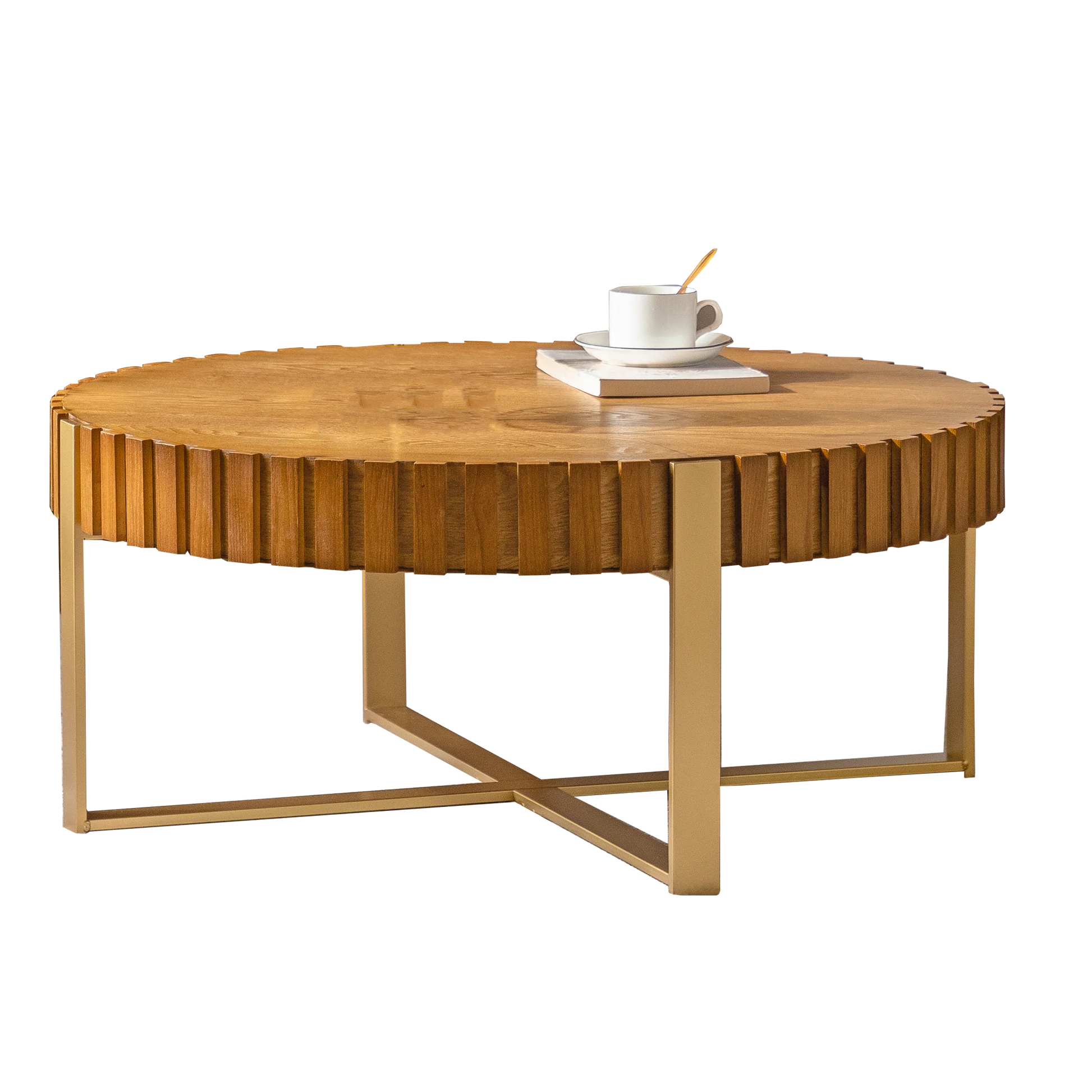 America Overseas Warehouse Home Furniture Hot Sale Geometric Three-dimensional Wood Grain Coffee Table Material Metal Base