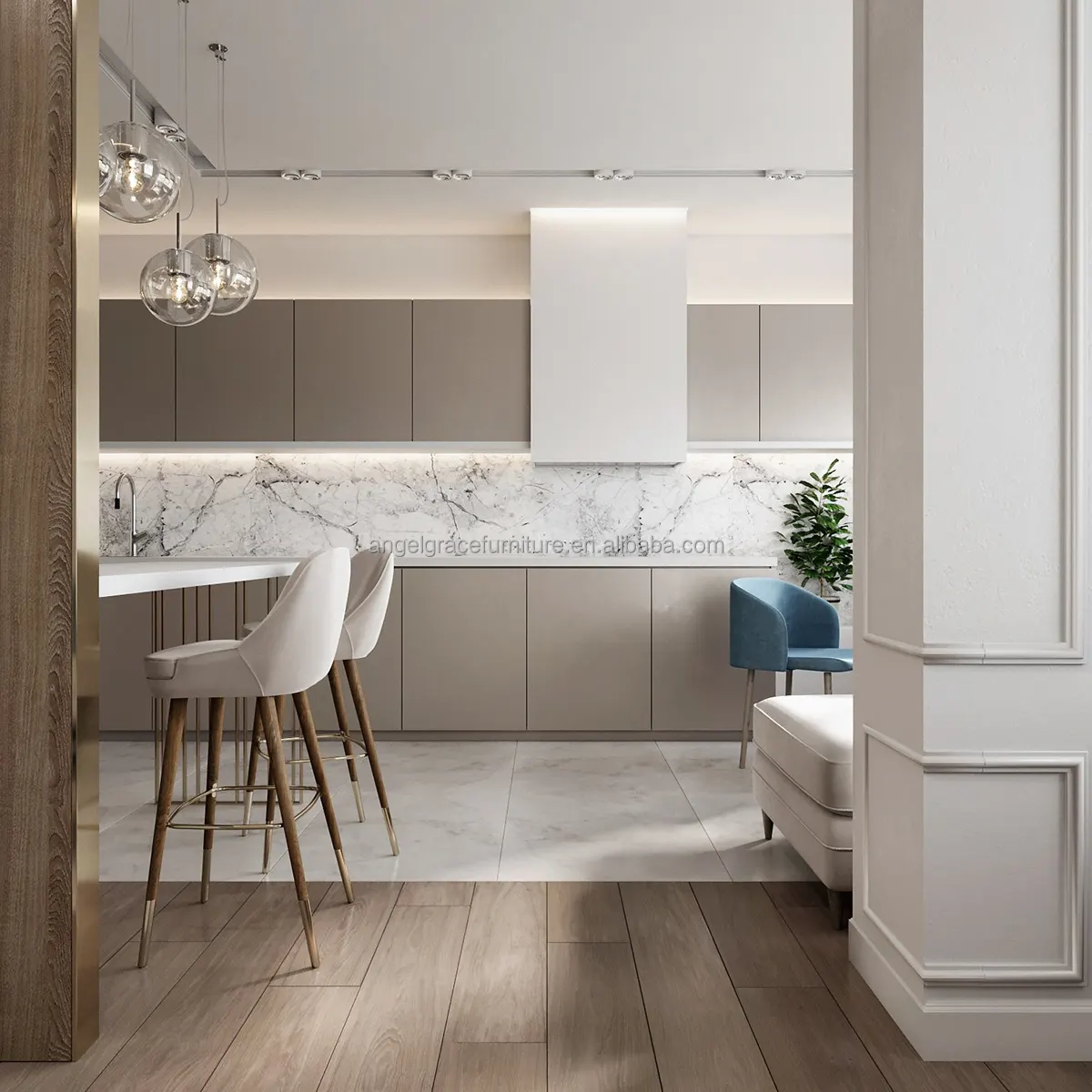 Angel Grace Modern White Shaker Modular Kitchen Cabinet MDF Panel PVC/Lacquer Design Island Furniture Kitchen Cabinets Product