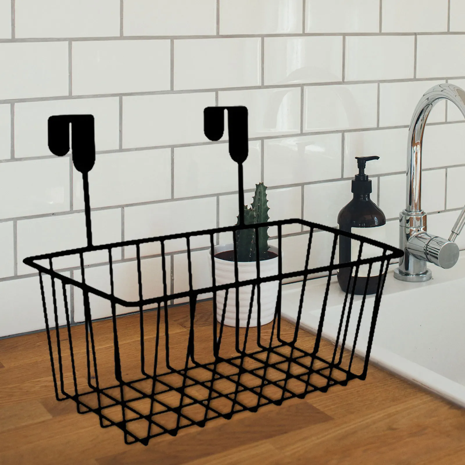 Grid Storage Baskets with Hooks Over Cabinet Door Organizer Wire Basket Hanging Storage Organizer Kitchen Bathroom Organizer