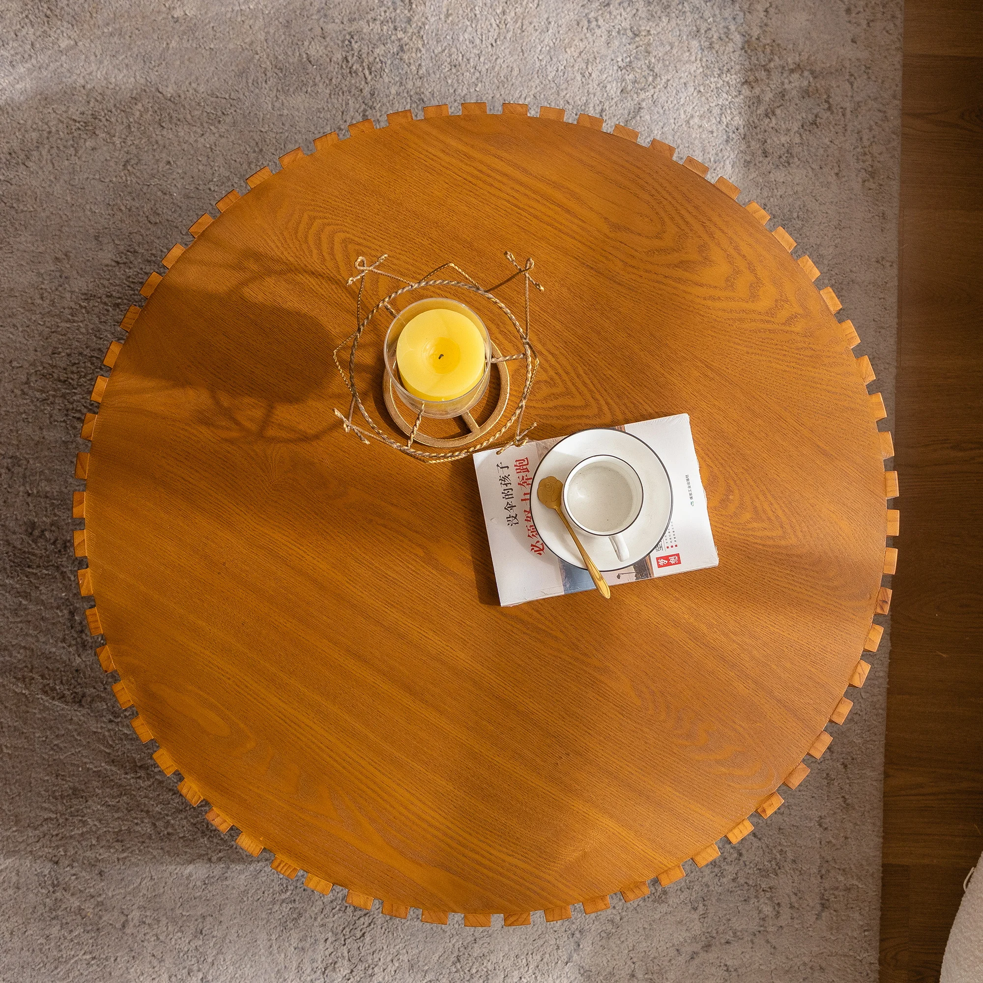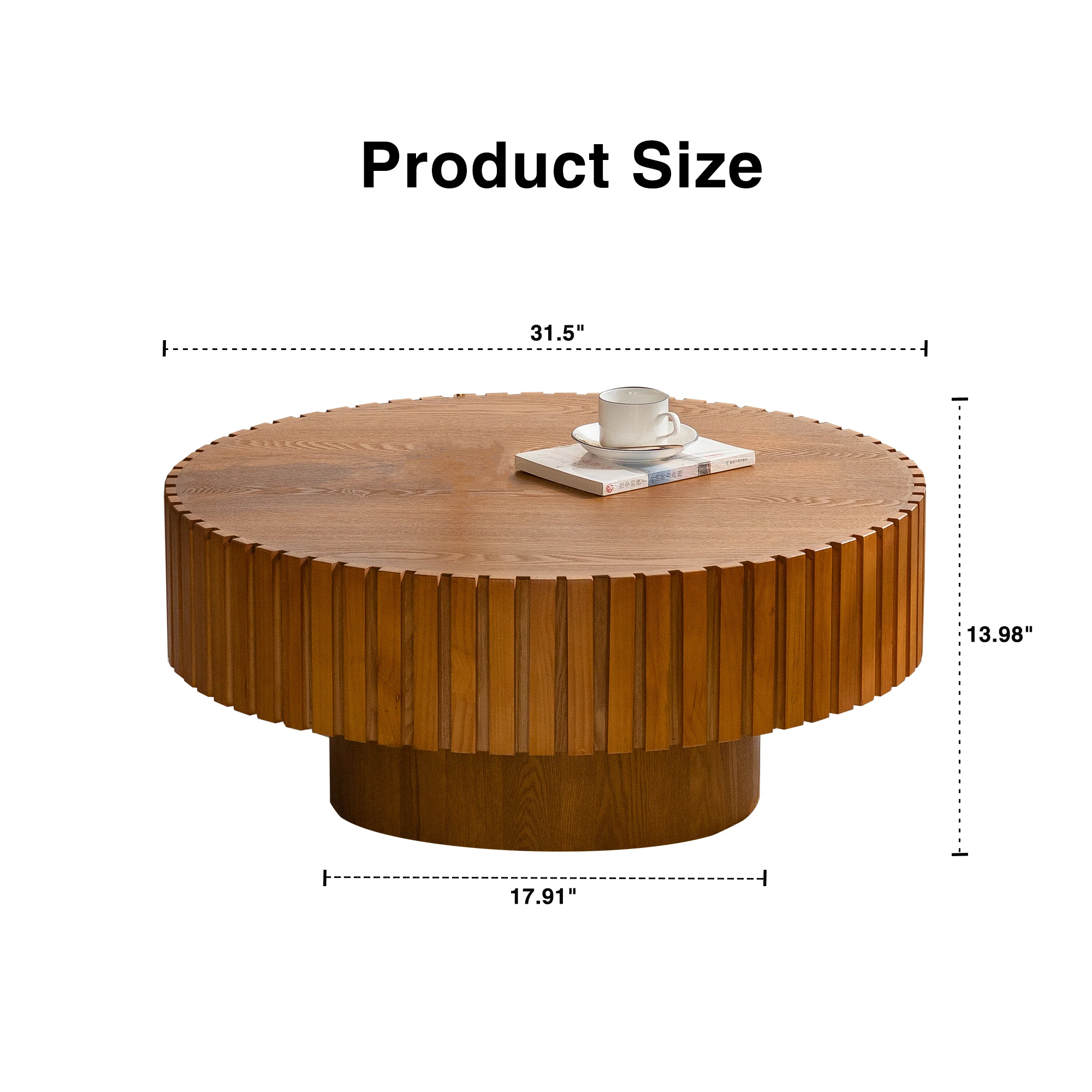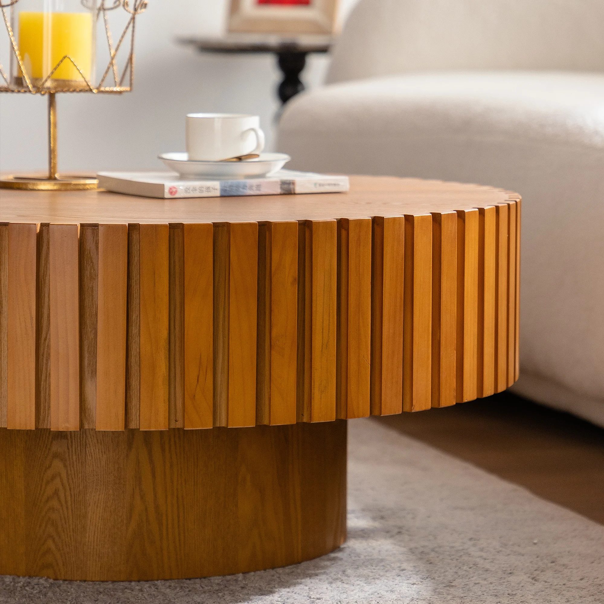 Hot Sale Modern 3D Vertical Grain Coffee Table Set Wood Round Center Table for Living Room for Home Furniture