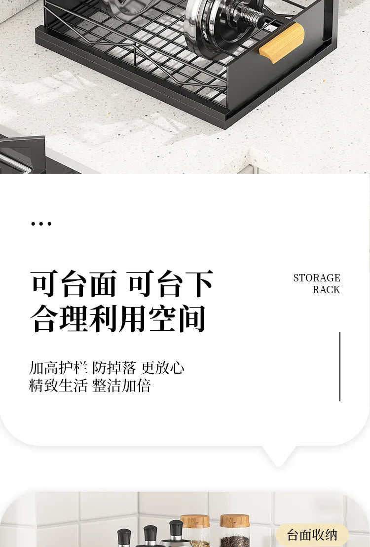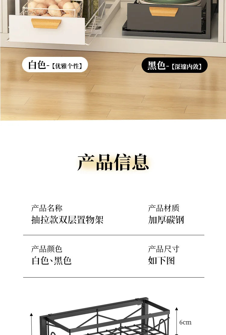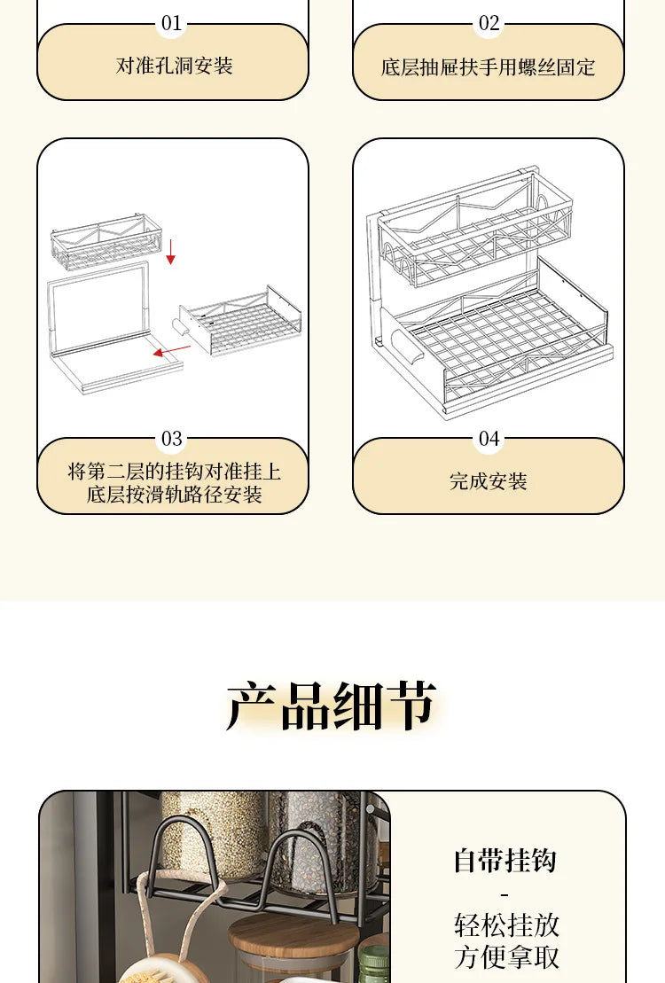 Kitchen Drawer Storage Rack, Pull-Out Under-Sink Organizer, Multi-Layer Storage Shelf, Cabinet Organizer for Kitchen Essential