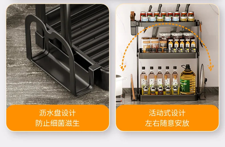 Kitchen Storage Rack, Multi-Purpose Spice Organizer, Countertop Utensil Holder for Knives, Chopsticks, Oil, Salt, Soy Sauce, Vin