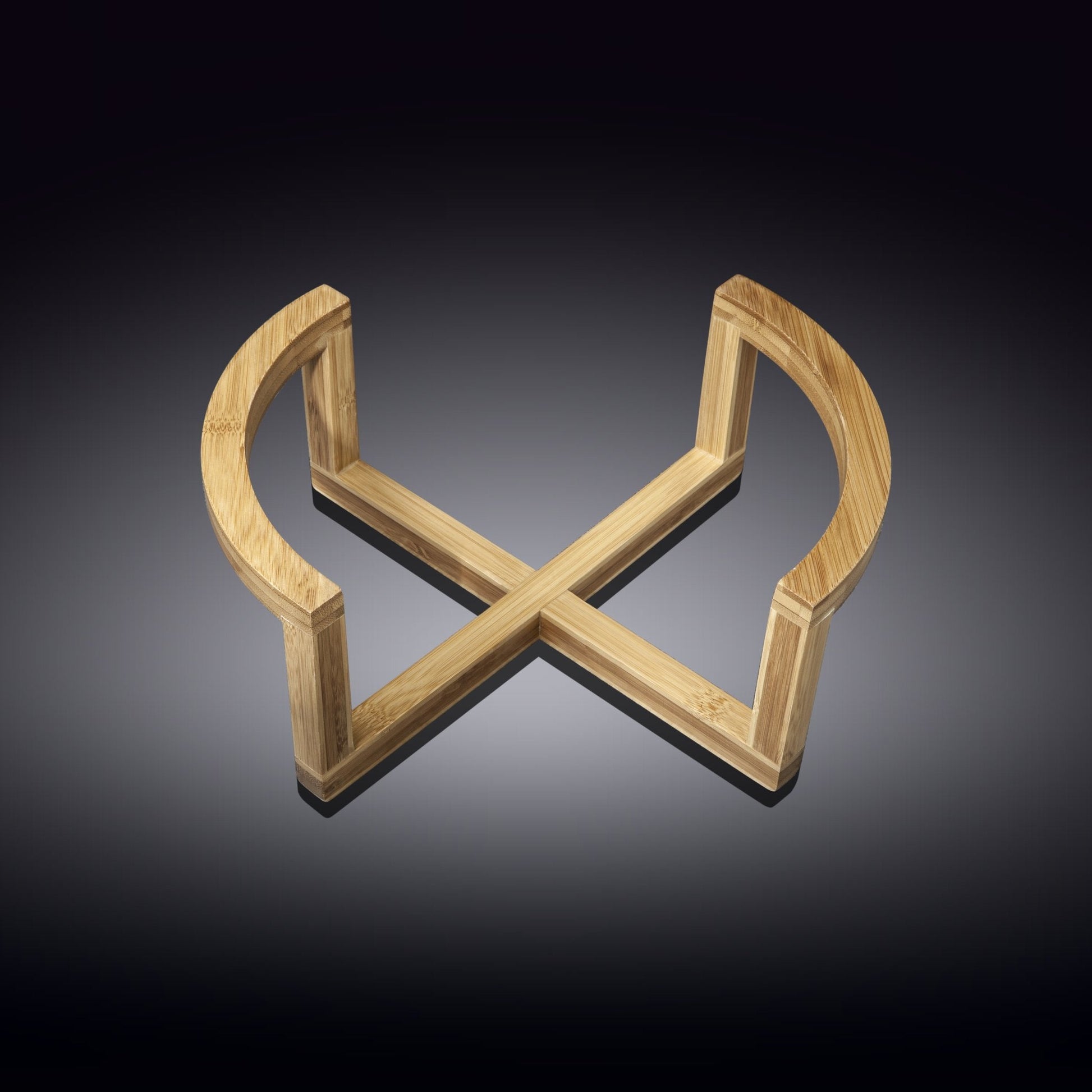 - Bamboo stand is 8. 75” wide and can be used as a presentation or serving piece and can also double as plate storage and is not dishwasher safe