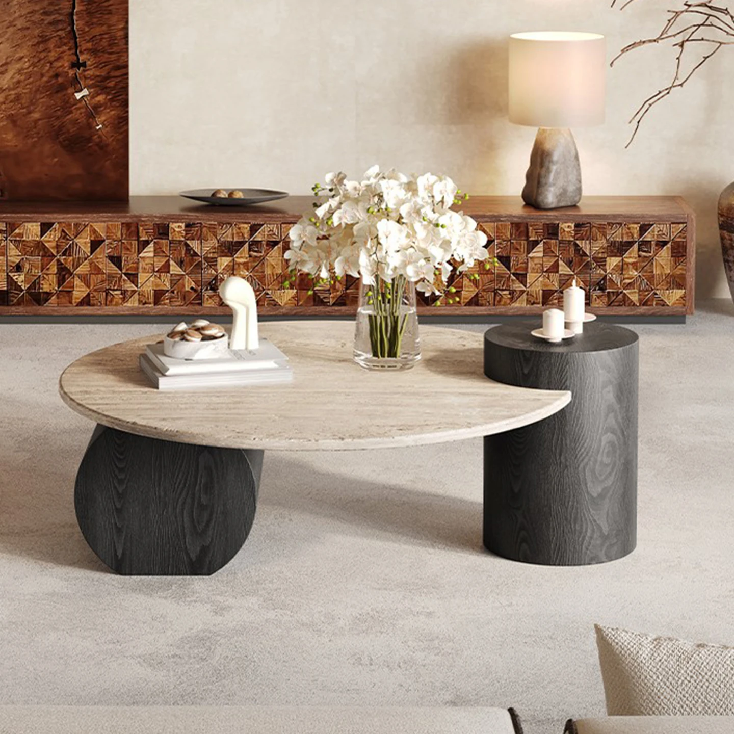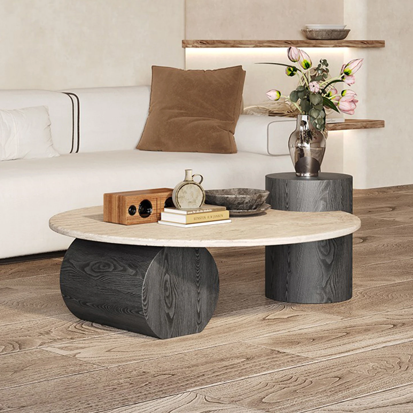 Modern Design Travertine Round Coffee Table Set for Living Room Furniture with Marble Finish Home Decor