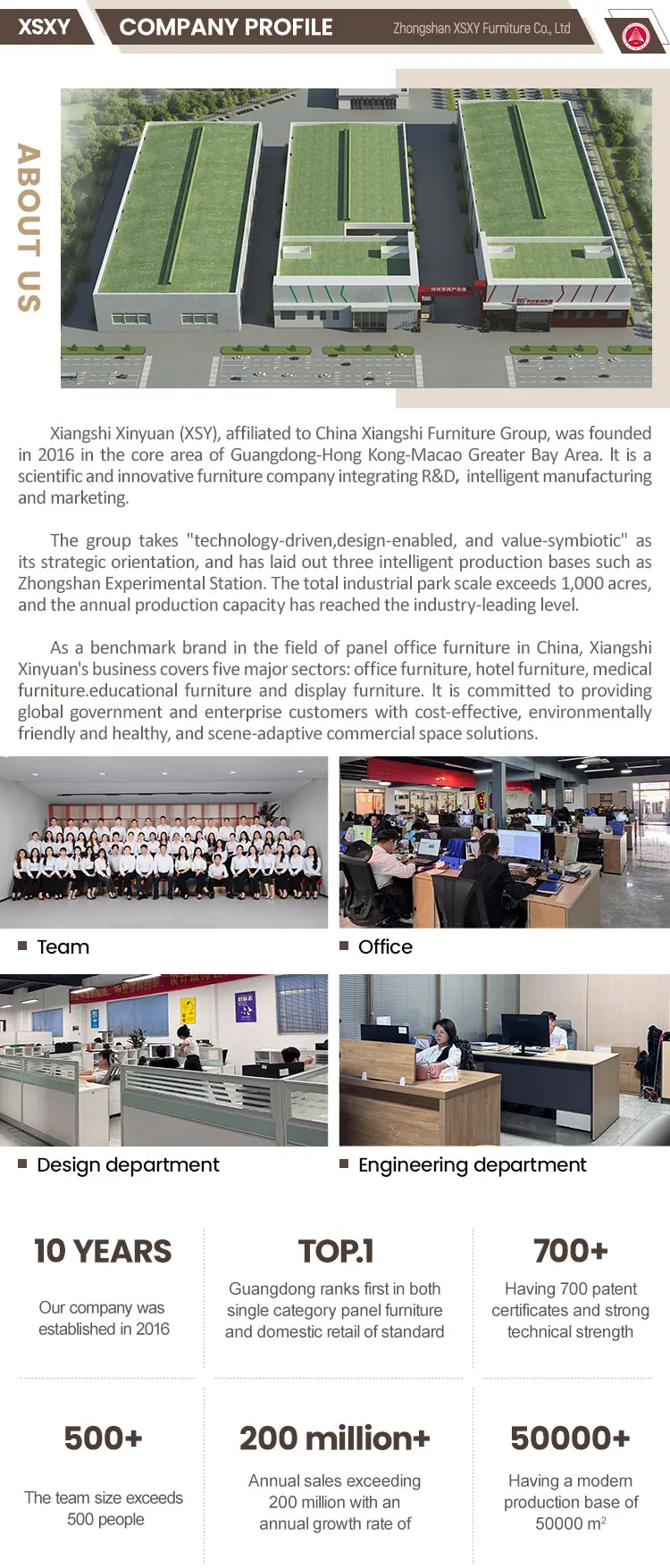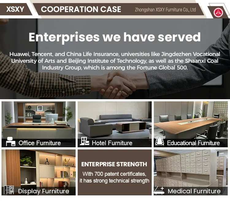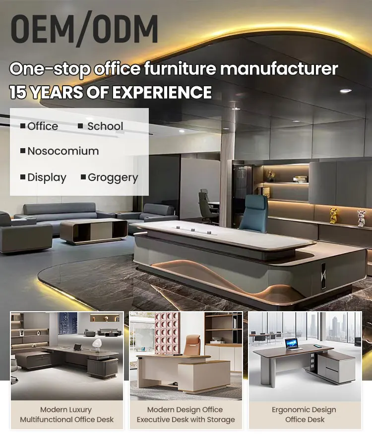 A:There are desk, meeting table, boss's table, office chair, filing cabinet, reception desk, sofa, coffee table and so on The