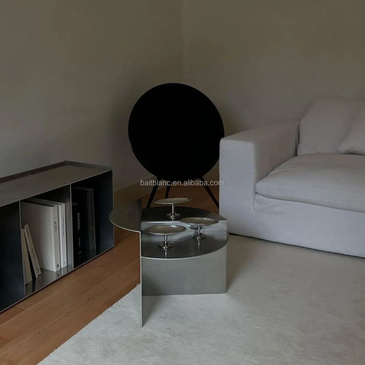 Modern Luxury European Stainless Steel Marble Wabi-Sabi Side Table Convertible Korean Coffee for Living Room Furniture