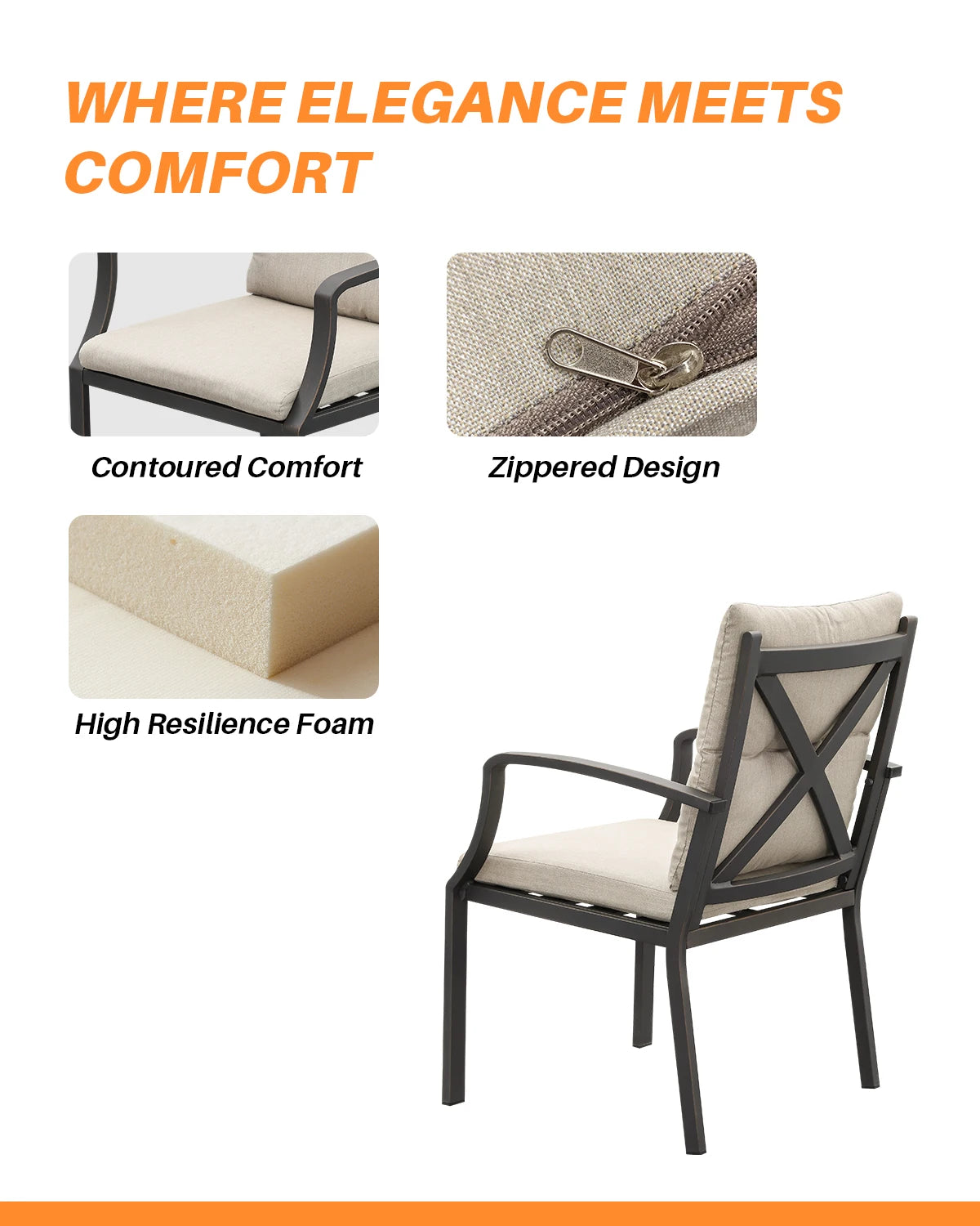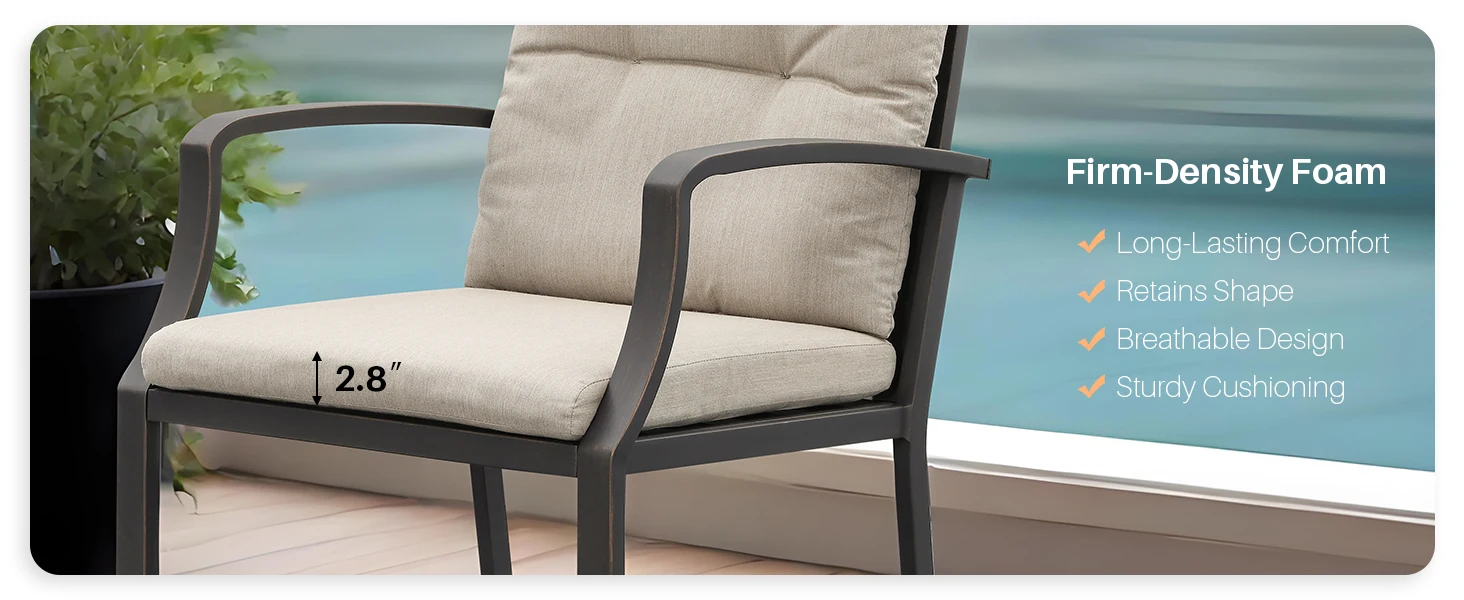 ✅ Ergonomic Comfort: High-back chairs feature X-braced stability, curved armrests, and 5cm-thick waterproof polyester cushions (removable,machine-washable) for all-day relaxation