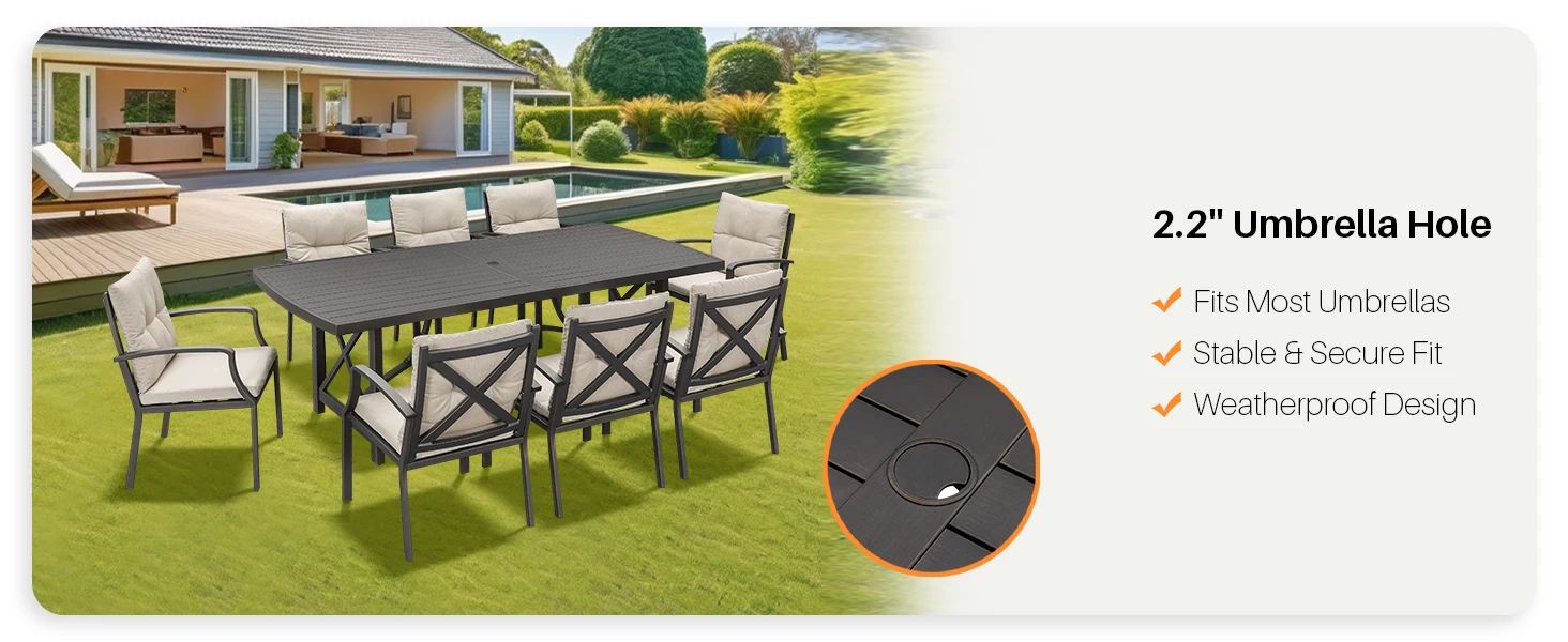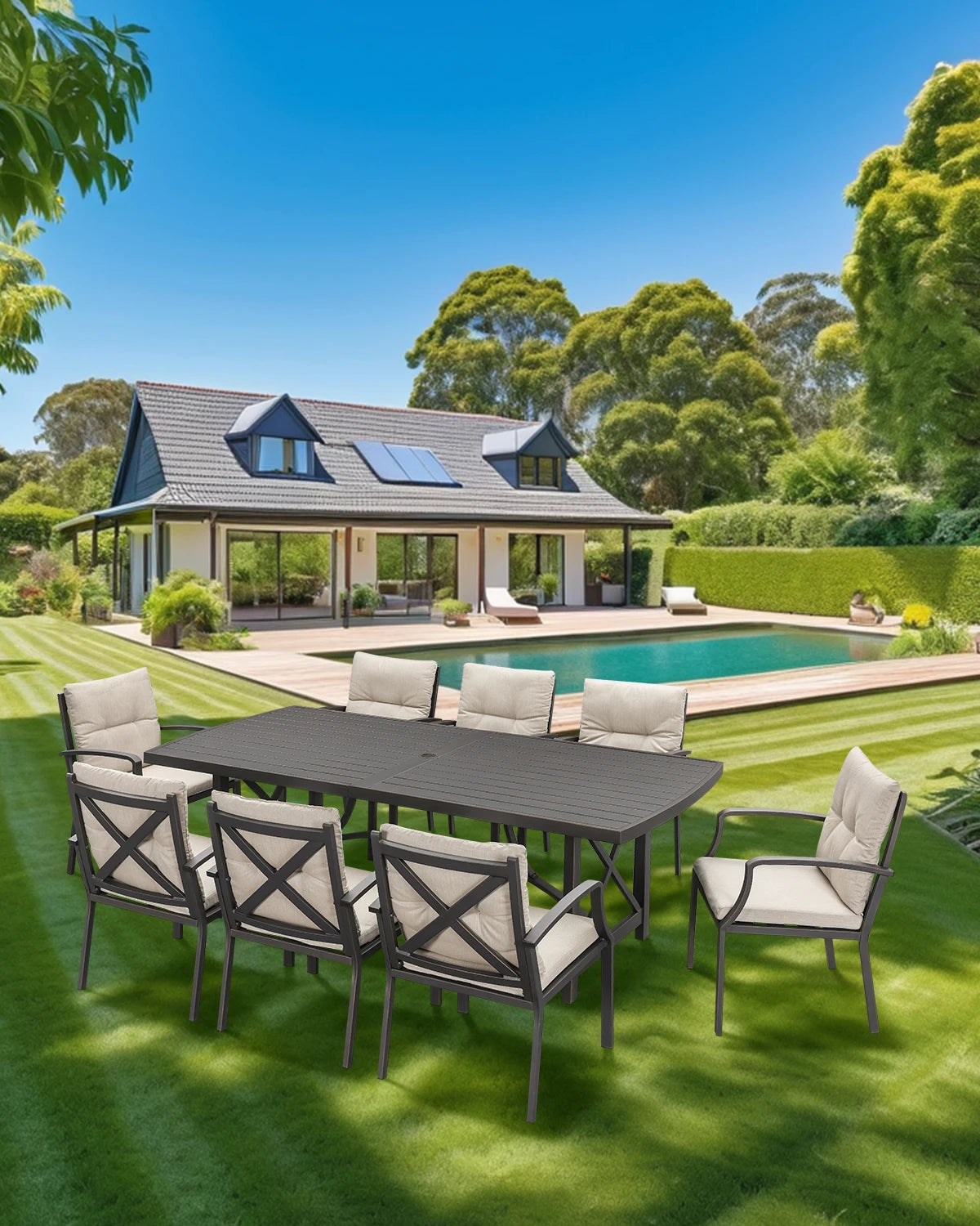 Premium 9-Piece Antique Outdoor Dining Set Lightweight Aluminum All-Weather UV-Resistant for Patio Garden Free US Shipping |