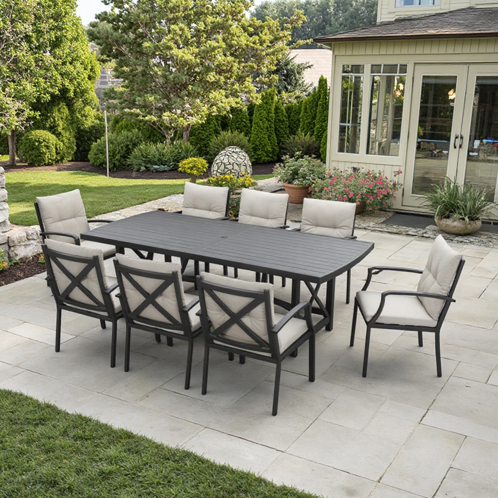 Premium 9-Piece Antique Outdoor Dining Set Lightweight Aluminum All-Weather UV-Resistant Free US Shipping Home School Furniture