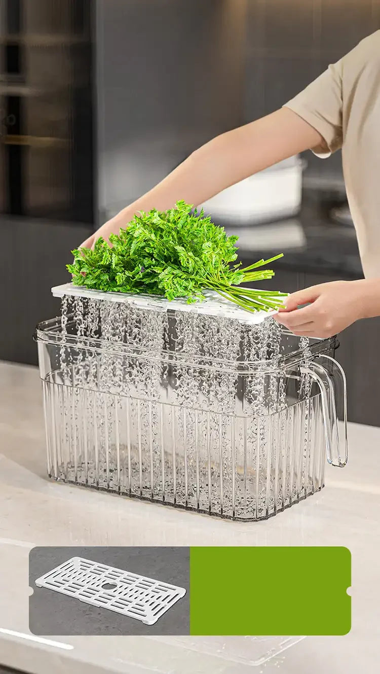 Refrigerator Produce Storage Containers with Drain Basket for Fruits & Vegetables