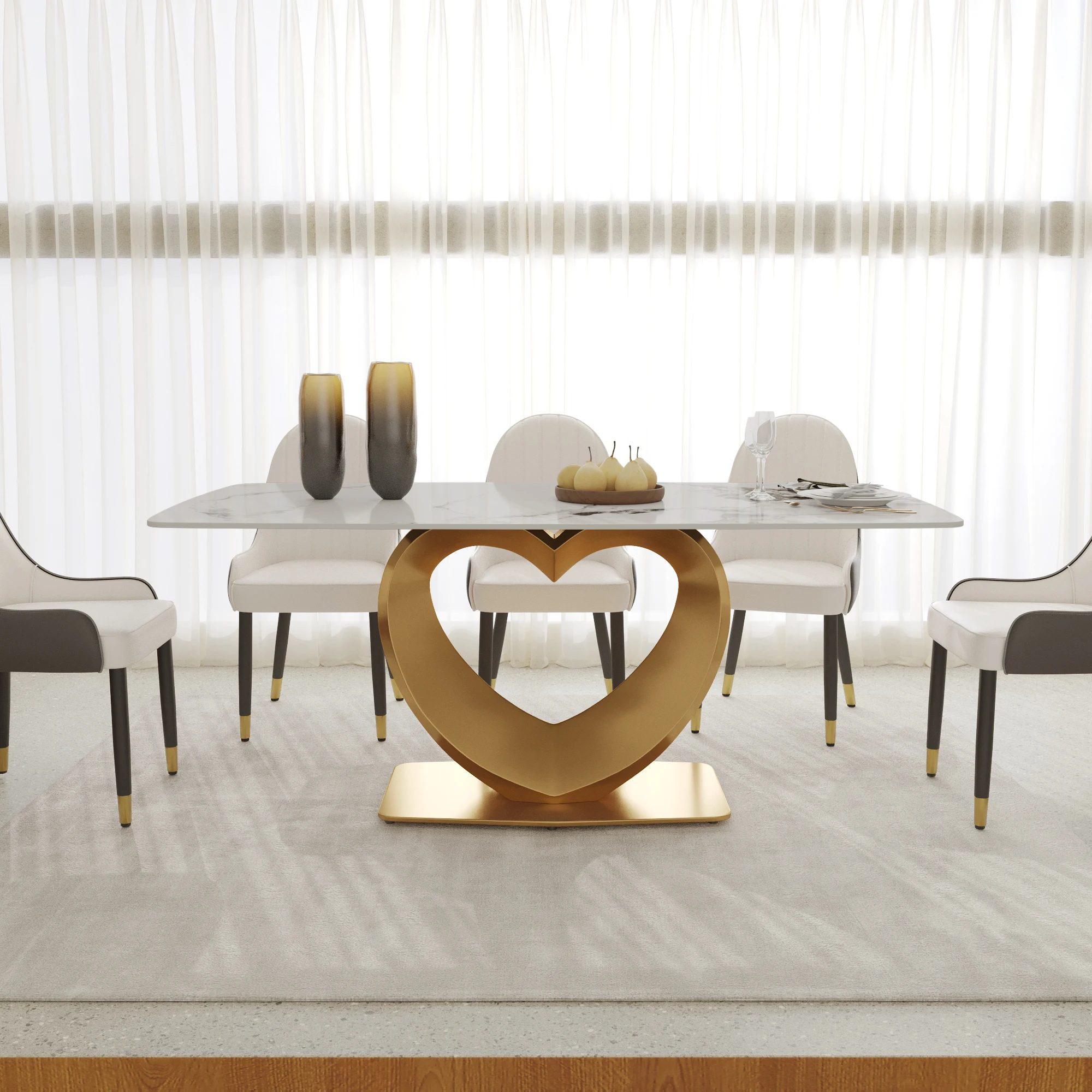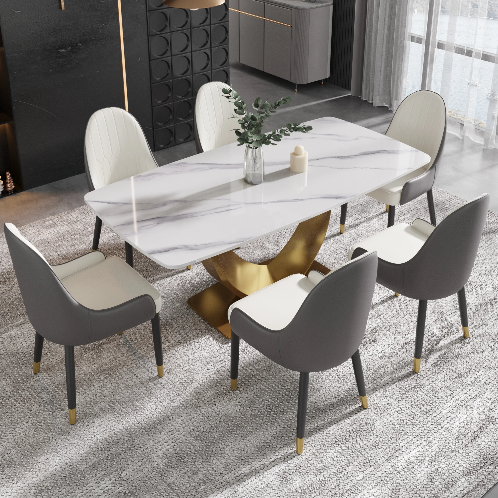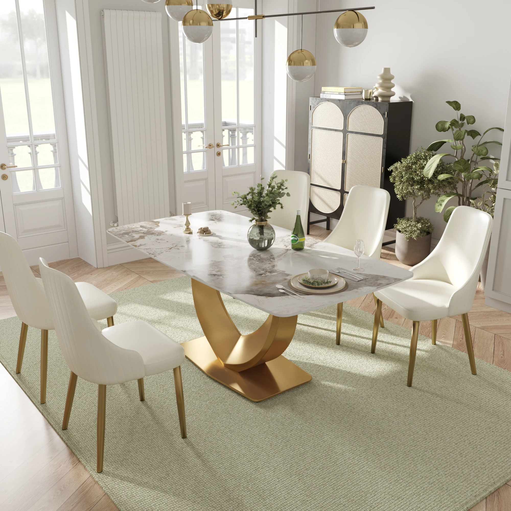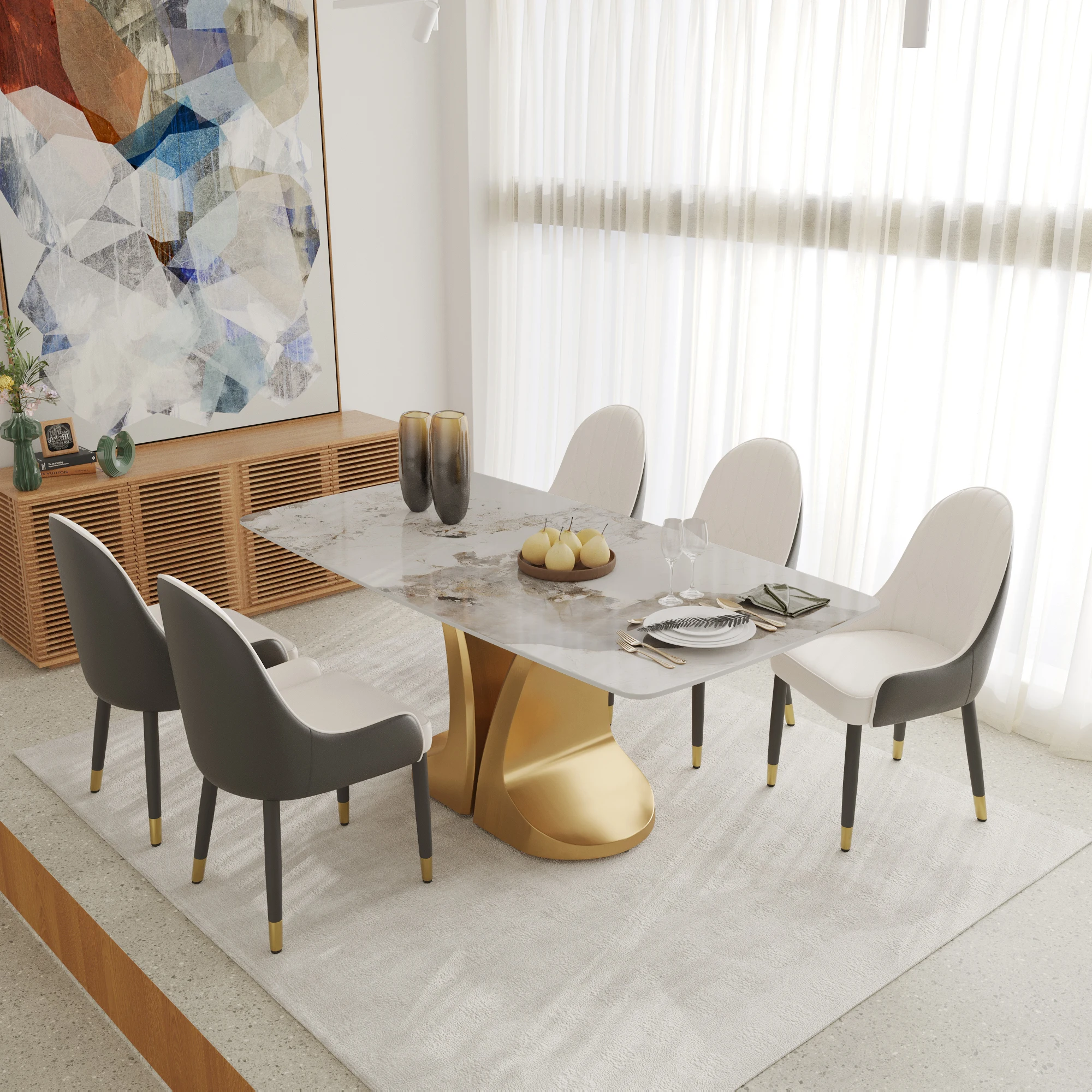 Voxhome US Drop Shipping Home Furniture Luxury Rectangle Dining Table Sintered Stone Marble Texture Top Gold Base Dinner Table