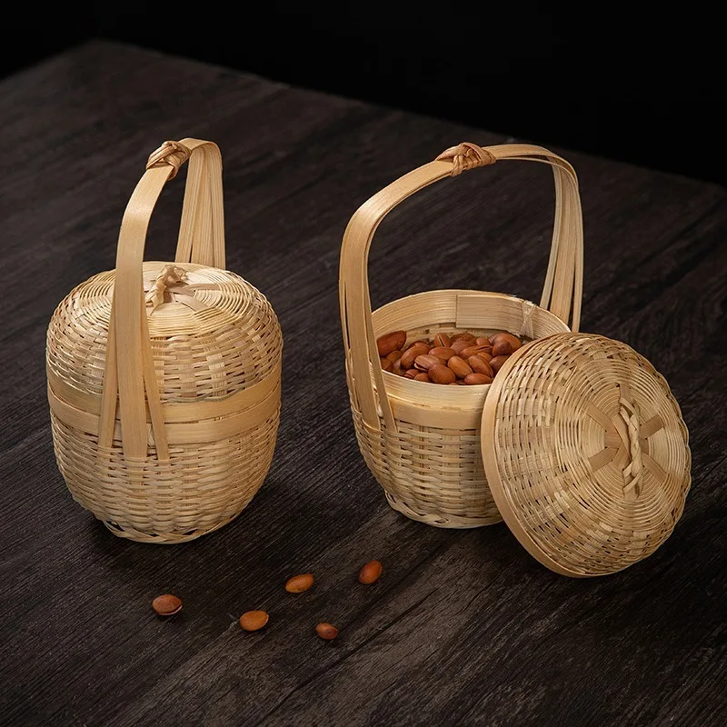 Woven Basket with Lid Decorative Small Bamboo Basket Bamboo Products Fine Woven Hand Basket Creative Small Bamboo Basket Crafts